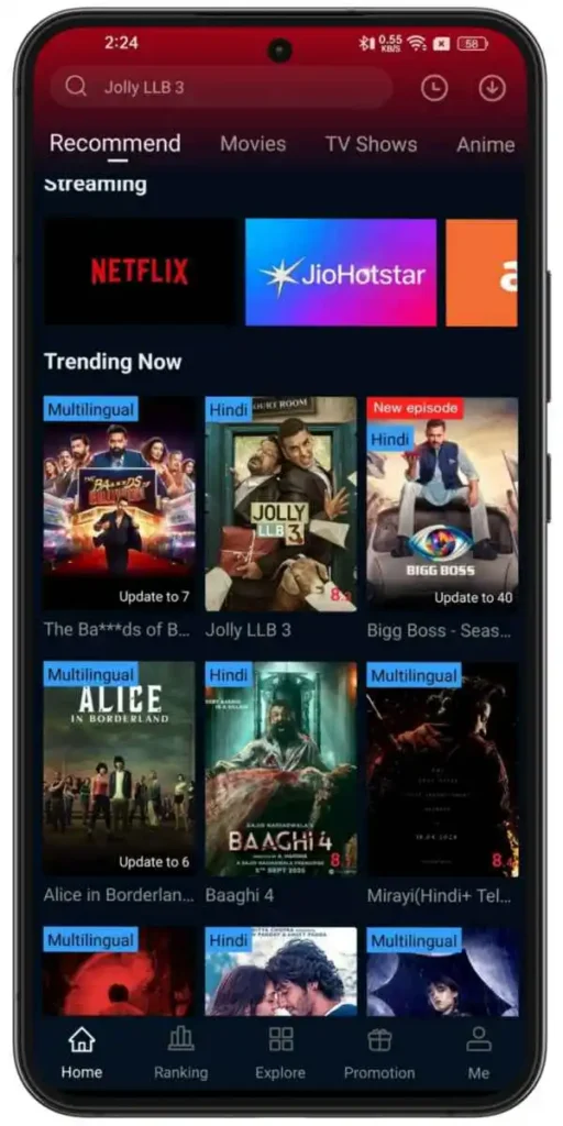 - Search to Find Movies: The built-in search tool lets you quickly find any movie, show, or anime by typing its name. No need to scroll endlessly, just type the title and play it in seconds.