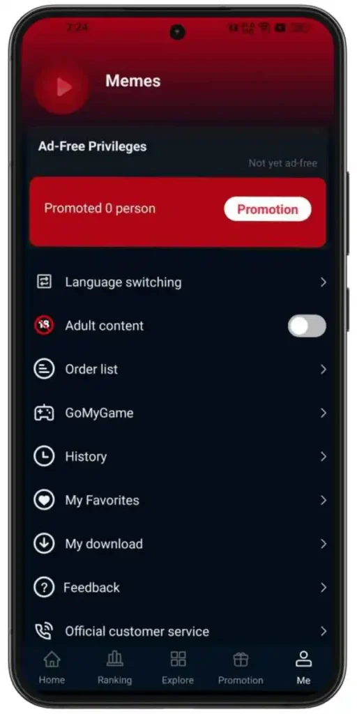 - Parental Control: Memes APK includes parental control features so parents can block adult content or restrict access to certain videos. It helps create a safe environment for children to watch age-appropriate content.