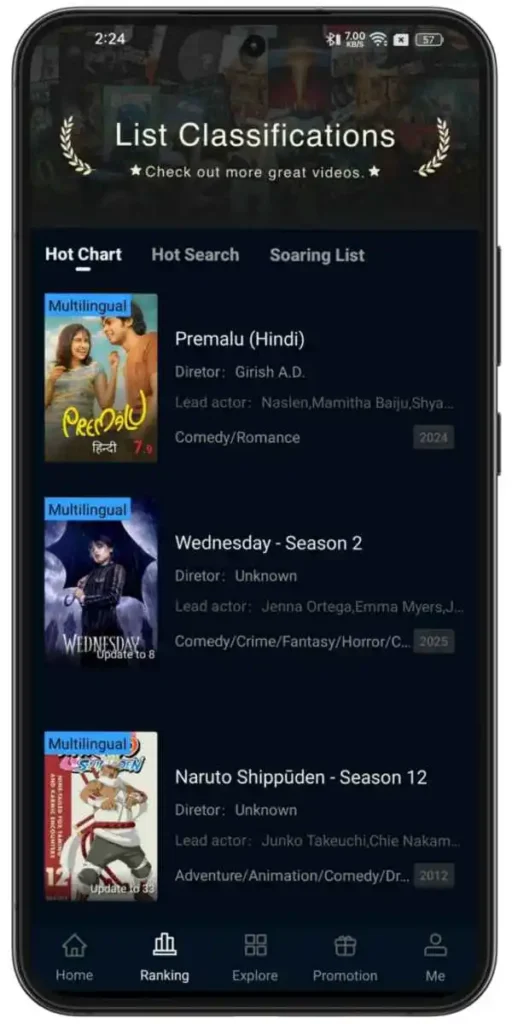 If you’re a fan of new movies, this app ensures you never miss out by listing all recently released and added films on the home screen.